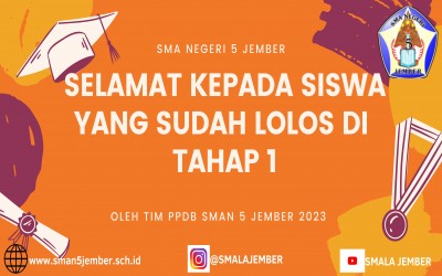 PENGUMUMAN PPDB TAHAP I SMAN 5 JEMBER TAHUN PELAJARAN 2023-2024.Berikut nama-nama yang tercantum dalam daftar peserta didik baru SMAN 5 JEMBER.Bagi pe