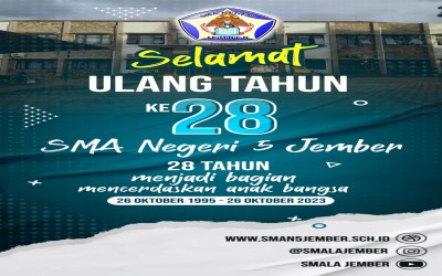 Semarak Kemeriahan Maulid Nabi dan Diesnatalis SMAN 5 Jember ke-28 Kamis (26/10/2023) rasa suka cita terpancar pada seluruh warga SMA Negeri 5 Jember