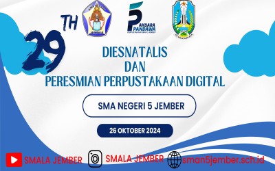 Tepat pada tanggal 26 Oktober 2024 SMAN 5 Jember berusia 29 tahun. Dimana umur yang sudah tidak muda dan tidak terlalu tua. Sudah banyak yang di lalui