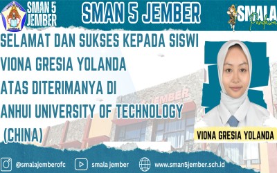 Ada salah 1 siswi yang lolos kuliah tapi tidak di kampus Jember, bahkan bukan kampus di Jawa Timur, Atau di provinsi lain. Melainkan lolos di Anhui Un