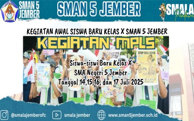 Kegiatan MPLS atau Masa Pengenalan Lingkungan Sekolah di SMA Negeri 5 Jember di lakukan pada tanggal 14 Juli hingga 17 Juli 2025. Kegiatan tersebut di