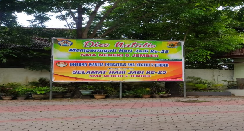 25 tahun sudah SMA Negeri 5 Jember berdiri dan menghasilkan bibit unggul calon penerus bangsa. Sekolah yang berdiri sejak 1994 ini terus berbenah dan berkembang untuk menjadi yang lebih baik lagi. perayaan tahun ini sangat berbeda, dimana pandemi Covid-19 yang mengancam kita semua membuat kita harus mengurungkan niat untuk merayakan hari jadi SMA Negeri 5 Jember tercinta ini.