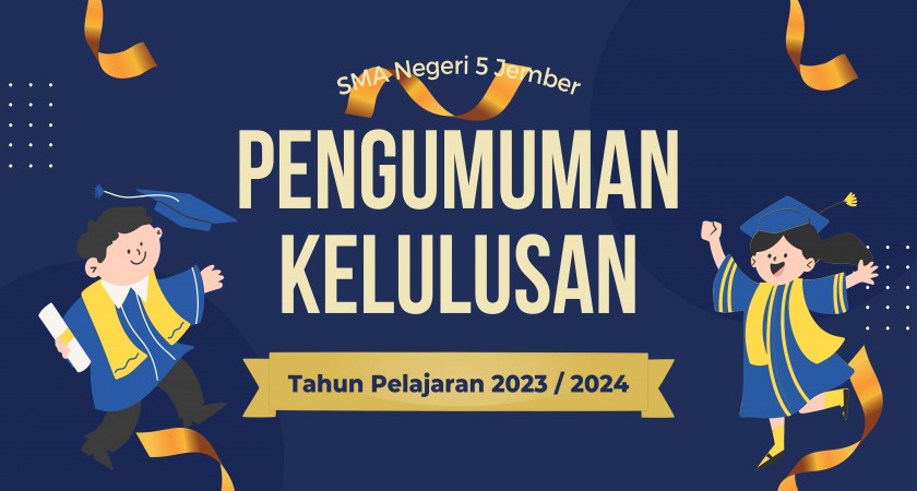 Rapat pleno kelulusan siswa kelas XII akan di laksanakan pada Hari Senin 06 Mei 2024. Dan pengumuman kelulusan dapat di cek di hari Senin 06 Mei 2024 pada jam 12.00. Silahkan siapkan NISN untuk melihat atau mengecek apakah kamu lulus atau tidak. Lalu untuk kelulusan bisa di cek pada website : https://un.sman5jember.sch.id/