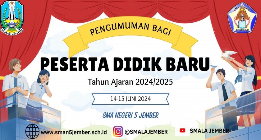 SELAMAT KEPADA CALON SISWA YANG SUDAH DINYATAKAN DITERIMA PPDB TAHAP 1. DAFTAR ULANG DAPAT DI LAKUKAN DI SMAN 5 JEMBER PADA TANGGAL 14 - 15 JUNI 2024