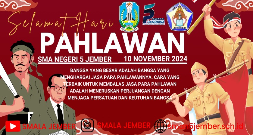 Pada hari Minggu tanggal 10 November kita semua warga negara Indonesia memperingati Hari Pahlawan dengan cara upacara di sekolah SMAN 5 Jember