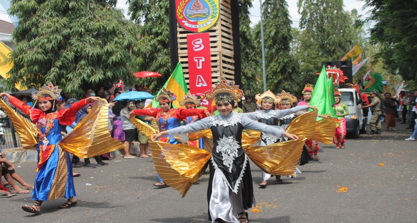Ekskul tari SMA Negeri 5 Jember menyuguhkan tarian Semarak Pandhalungan di hadapan Bupati Jember Dr. Hj Faida dan masyarakat Jember.